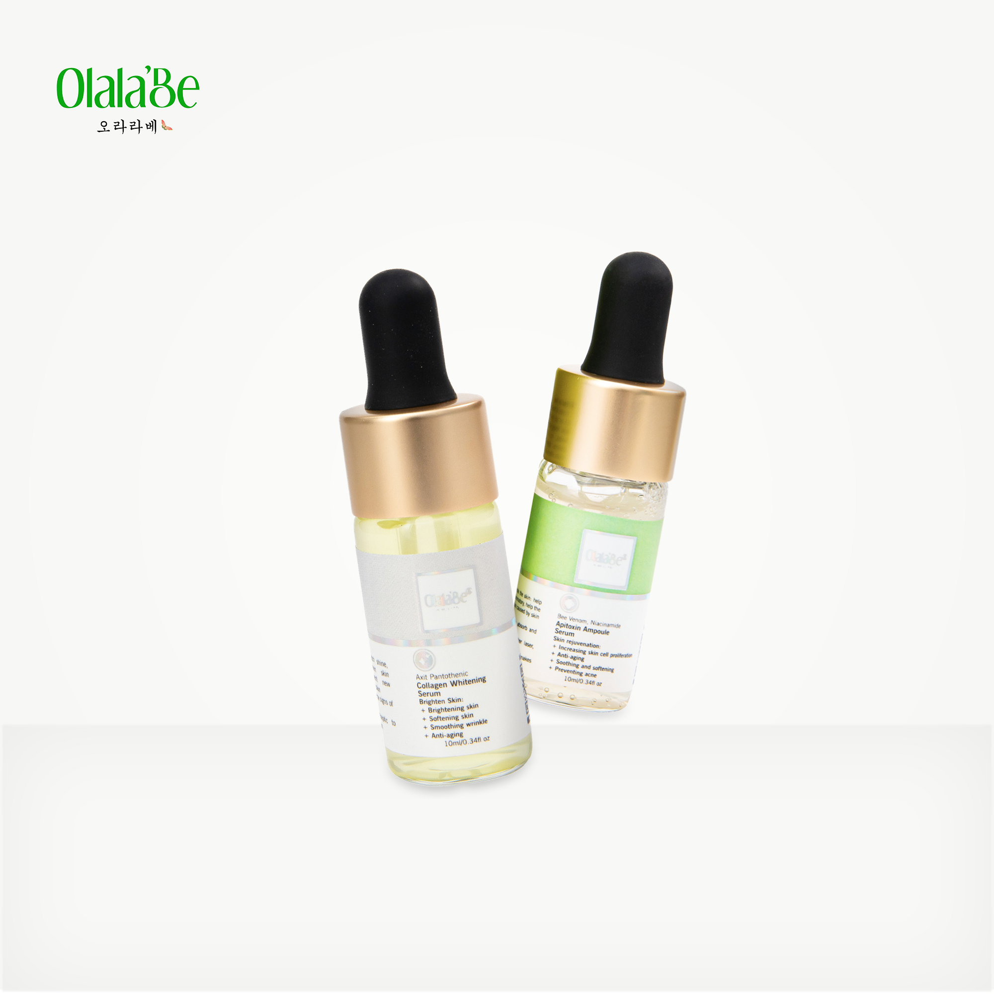Combo dưỡng trắng và làm đều màu da của Olala’Be kết hợp hai sản phẩm chủ lực: Tế Bào Gốc Nọc Ong (10ml) và Serum Trắng Da Olala’Be (10ml). Đây là giải pháp chăm sóc da chuyên sâu, giúp hỗ trợ giảm mụn, tái tạo và phục hồi làn da sau tổn thương, đồng thời cải thiện độ sáng và đều màu da.